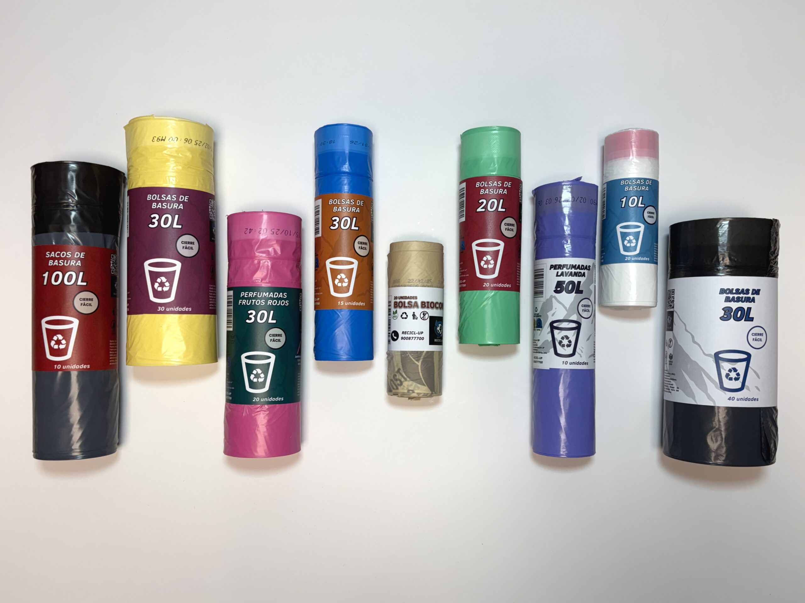 Las bolsas de basura se presentan en formato rollo con precorte para que su separación sea más fácil.